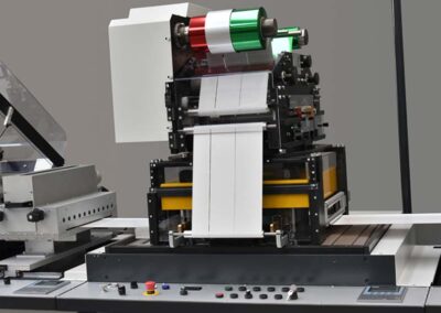 Line suitable for short and medium runs, with horizontal paper travel, excellent compromise between cost and production speed. Short setup time, with minimum material waste. It allows the main finishing solutions, for a complete label, with perfect register.